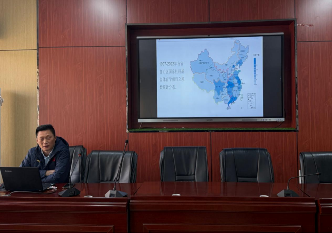 会上,赵忠伟教授围绕新时代高校教师做好科研的重要性和实现路径、体育学科课题申报,尤其是国家社会科学基金项目申报作进行了深入解读,详细分析了体育学科研究领域选题与立项情况。同时,结合自己申报和评审经历,对近年来体育学科立项研究方向分布、研究热点、新兴学术问题、选题核心要素等方面进行全面深入的讲解,全面梳理了撰写过程中的重点,细致分析了其中常见问题并给出了解决建议,为申请书的撰写提供了明确的思路与方法。